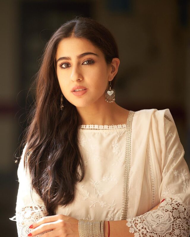 रक्षाबंधन पर आपको सिंपल लुक चाहिए तो सारा अली खान का व्हाइट इंडियन ड्रेस अवतार बेस्ट है। इस ड्रेस के साथ आप चाहे तो सिल्वर जूलरी और बिंदी कैरी करके खुद को स्टाइलिश लुक दे सकती हैं।