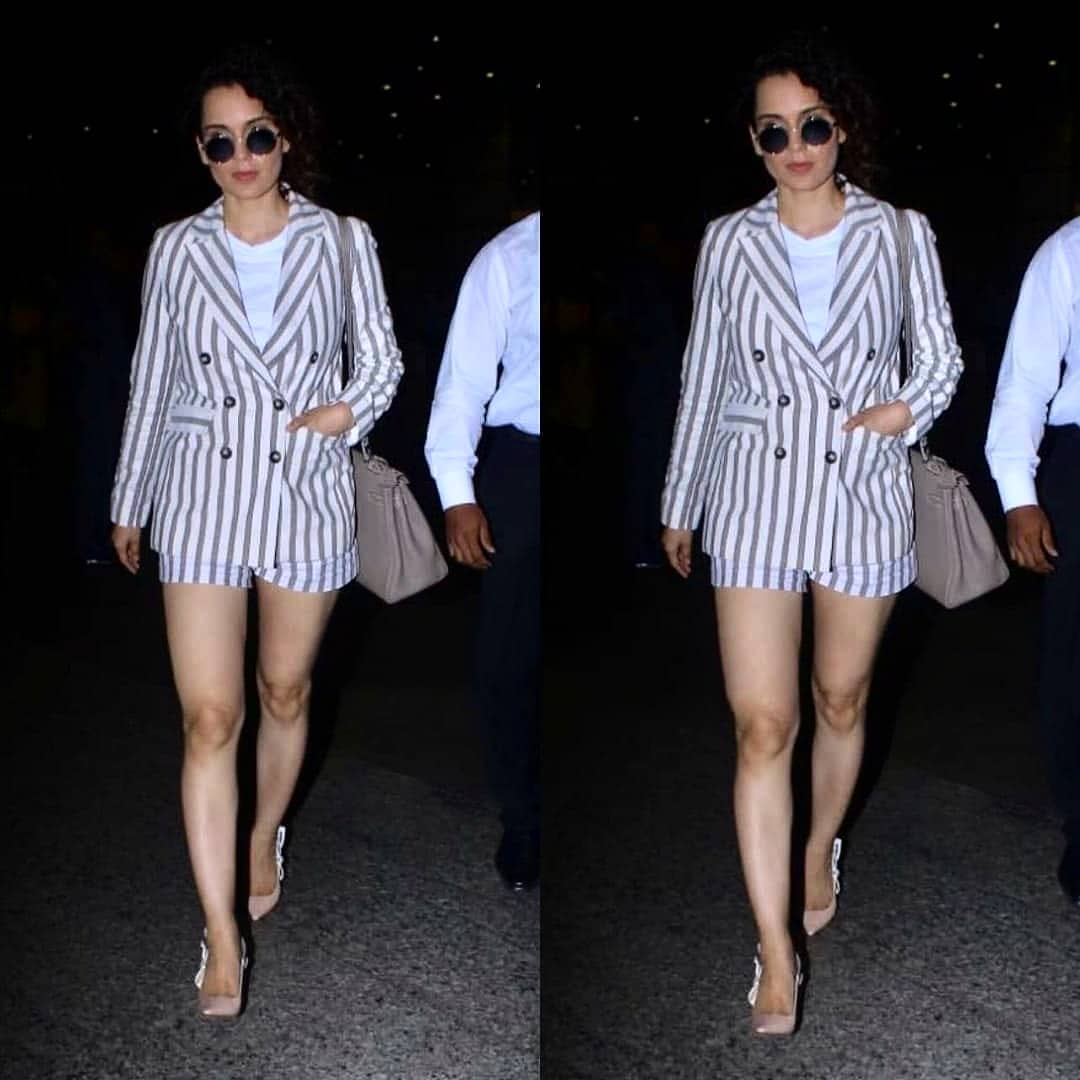 वहीं कंगना के क्लासिक साफ़ सुथरे लुक को एक ट्राउजर और स्लिंग बैग के साथ पाया जा सकता है। कंगना की तरह आप भी शर्ट की स्ट्राइप से मैच करती हुई स्टिलेटोस भी ट्राई कर सकती है। अपने स्टाइलिश स्ट्रीट स्टाइल लुक को पूरा करने के लिए बोल्ड लिप्स और मिरर सनग्लासेस को साथ ले जाएं।