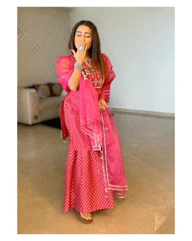 शादी के बाद अगर ये आपकी पहली तीज है और आप साड़ी नहीं पहनना चाहती हैं तो नेहा का येलो ड्रेस लुक आपके लिए परफेक्ट है। इस लुक में नेहा ने फ्लेयर प्लाजो के साथ ब्लाउज और जैकेट को कैरी किया है। हाथों में लाल चूड़ा और इयरिंग लुक को परफेक्ट बनाने के लिए बेस्ट है।