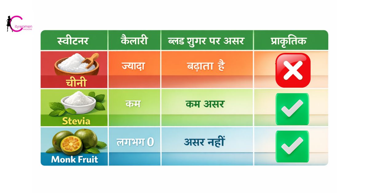 मॉन्क फ्रूट स्वीटनर का सबसे बड़ा फ़ायदा यह है कि इससे ब्लड शुगर नहीं बढ़ता है। इसलिए यह डायबिटीज मैनेजमेंट के लिए एक गेम-चेंजर माना जा रहा है।